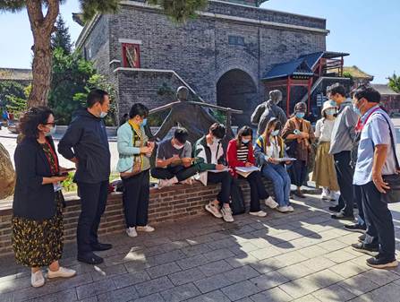2022年9月21日上午,学校教发中心赵华恩主任组织学校督导组邓西录,朝鲁,吴建华,白继海等专家赴山海关古城检查城建学院城规20级学生美术写生实习。城建学院党委书记姜亚东,党委副书记副院长李强华和学院督导组成员陪同检查实习。