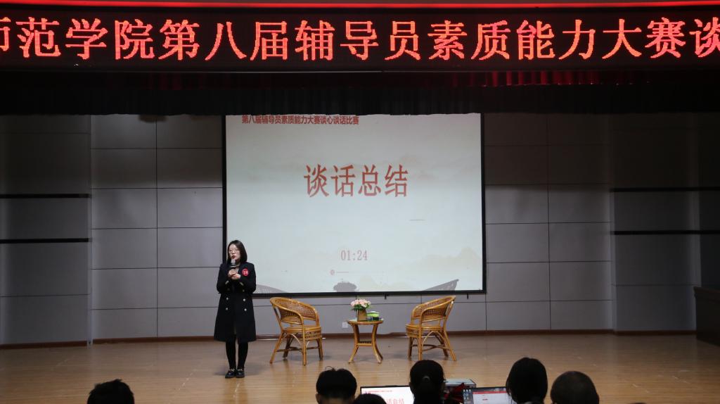 为深入学习贯彻党的二十大精神,切实提高辅导员素质能力,学校特举办第八届辅导员素质能力大赛。2023年4月7日下午,由yl6809永利集团承办的“谈心谈话”比赛在1号办公楼多功能厅举行。来自十五个院系的辅导员参加比赛,本次比赛邀请组织部、安全处、工会、人事处、学生处等部门领导做评委,学生处处长和各院系学生工作主管领导出席比赛,全体辅导员到场观摩。
