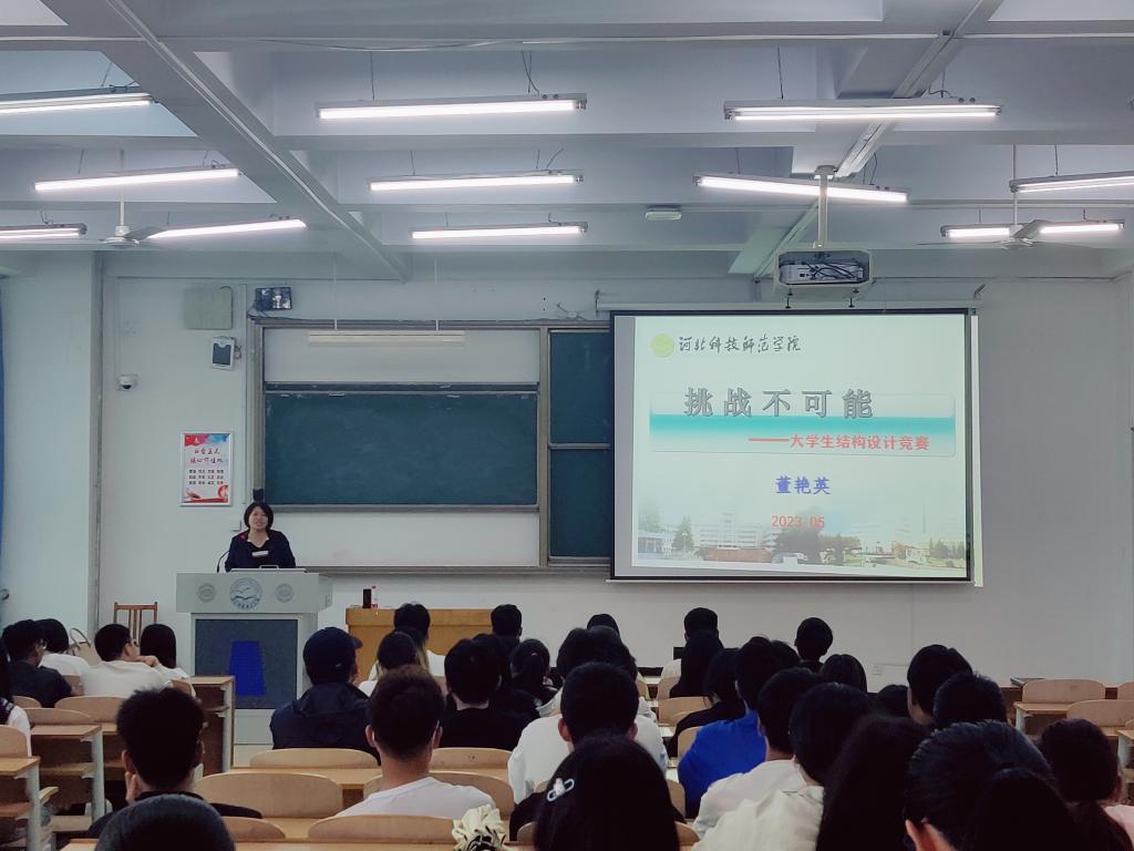 为更好的准备yl6809永利集团创新设计竞赛——结构设计竞赛,使参赛同学更全面、准确、清晰地掌握赛题的一些要求及注意事项,城市建设学院于2023年5月18日,在逸夫楼B202举办结构设计竞赛经验分享讲座。邀请yl6809永利集团董艳英教授担任主讲人,相关指导教师和参赛选手参加了本次讲座。
