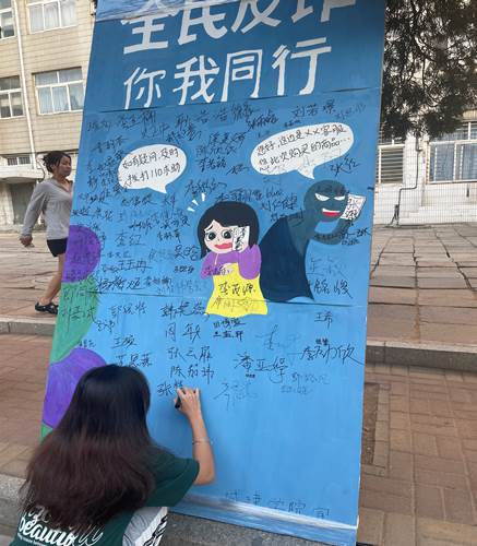 全院学生积极响应本次签名活动,共计300余名同学在签名板上庄重写下了自己的名字。活动中,志愿者们介绍了校园电信网络诈骗的紧迫形势,重点宣传防骗“6不原则”,即不轻信、不汇款、不透露、不扫码、不点击链接、不接听转接电话,提醒同学们提高警惕,切实维护自身财产安全和合法权益。