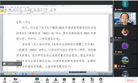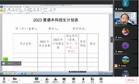 2022年10月13日下午15:30,城建学院召开讨论我院2023年招生计划和进人计划线上会议。城建学院全体领导班子成员、各专业带头人、教学部正副主任、实验室正副主任参加会议,朱天志院长主持了会议。