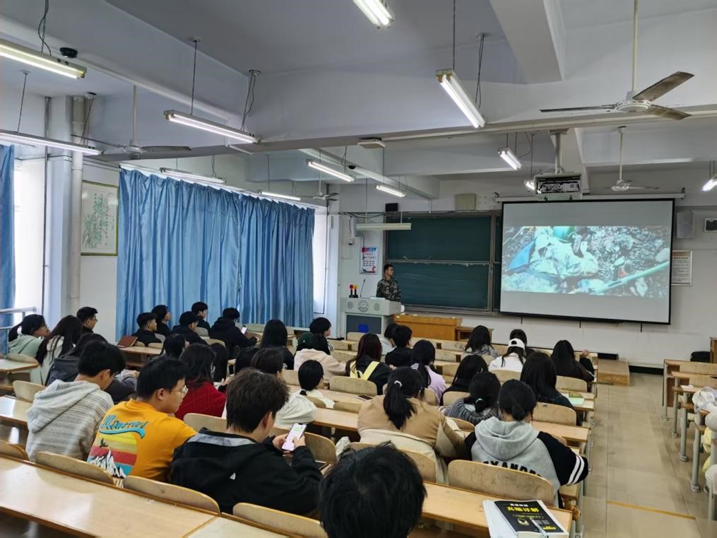 活动邀请2024级退役士兵张永彬为大家宣讲。张永彬以自身经历为切入点,进行了三个方面的交流。首先,他带领大家一同观看了 2025 年征兵公益视频,用热血澎湃的精彩画面点燃了同学们的报国之志,其次,讲述了参军入伍的一系列政策法规、优惠政策,最后,分享了自己的入伍历程、成长蜕变,让同学们对部队生活有了更为直观、深刻的认知。